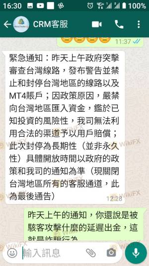 내 친구 중 한 명이 나에게이 플랫폼을 추천했습니다. 처음에는 $ 1,000를 입금하려고했지만 수익을 냈습니다. 나는 8 월에 100 달러를 인출하고 성공했습니다. 1,000 달러를 인출하고 싶을 때 고객 서비스에서 대만 고객은 한 달 이내에 한 번 인출 할 수 있다고합니다. 그런 다음 9 월까지 기다렸다가 2 만 달러를 인출하고 싶었습니다. 당시 나는 홍콩의 국가 보안법 때문에 계정을 일정 기간 폐쇄해야한다고 들었습니다. 내 모든 자금이 사라졌습니다. 나는 홍콩의 경찰에 전화했습니다. 속임수로부터 자유 롭습니다.