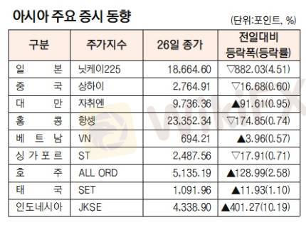 시장 분석아시아주요 증시 동향(3월 26일)