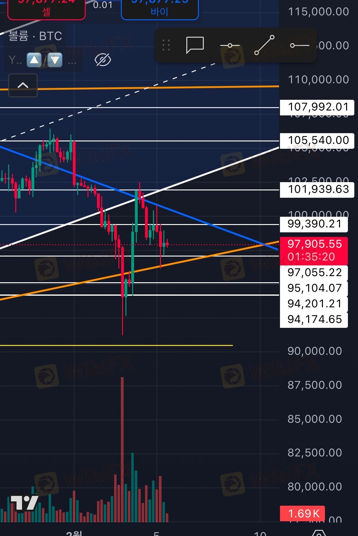 97-98K를 어지럽게 무빙하는 비트코인..