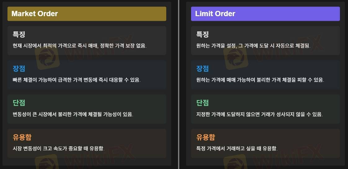 시장 가격이 주문가에 닿지 않으면 거래가 성사되지 않을 수 있음.