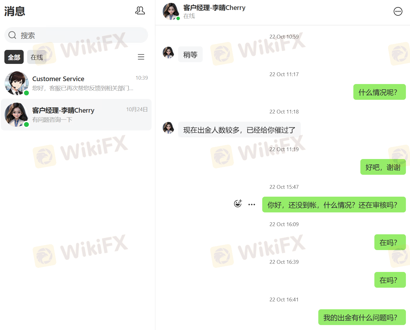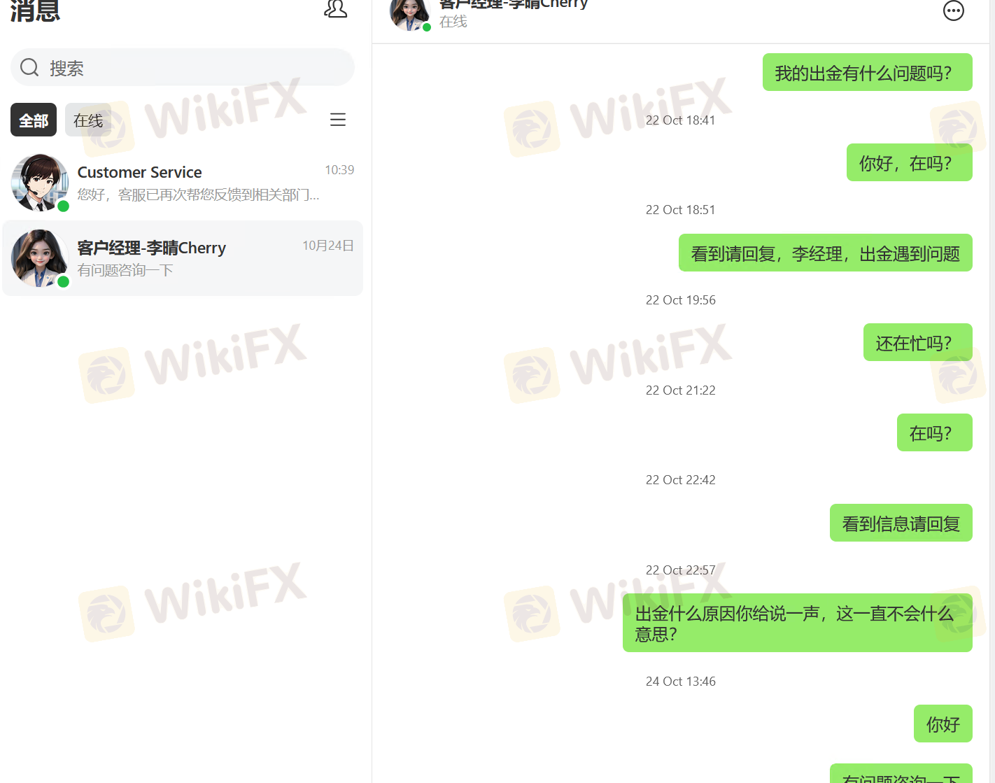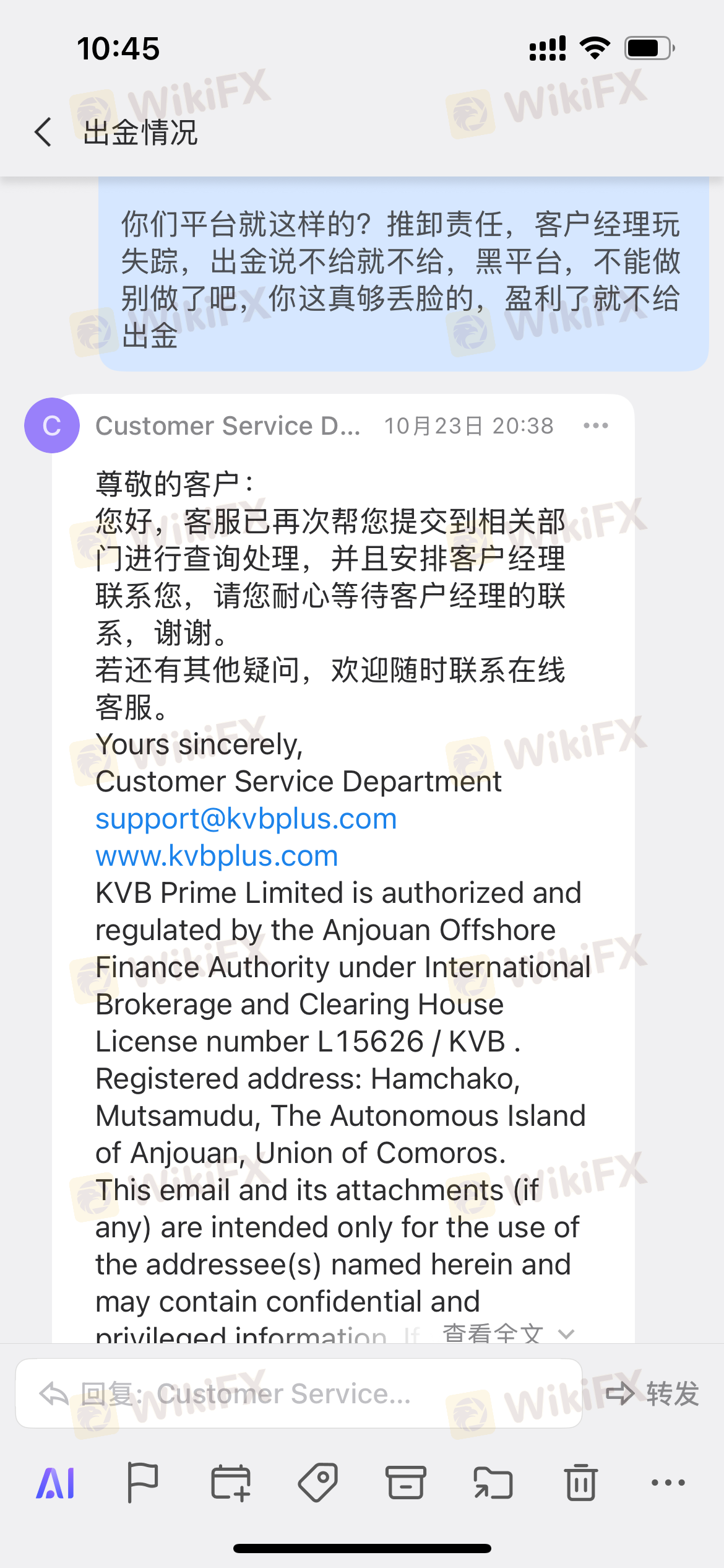 KVB, eu fui tão cego ao escolher a sua plataforma! Quando eu negociava forex, seguia rigorosamente a sua análise de dados, verificando repetidamente sua precisão a cada vez, mas acabava perdendo dinheiro toda vez que fazia um pedido! Depois de uma comparação cuidadosa, descobri que não apenas os seus dados de mercado estavam atrasados, mas vocês também manipulavam deliberadamente pontos-chave de negociação, alterando os níveis de suporte para baixo e os níveis de resistência para cima, apenas para forçar nossos pedidos a parar perdas antecipadamente e lucrar com isso! Agora eu quero parar minhas perdas e sacar meus fundos, mas vocês estão tornando isso extremamente difícil! Já enviei três solicitações de saque, e todas foram rejeitadas com "anomalias nos dados, exigindo verificação dos registros de transação". Pedi para ver os tais "registros de dados anormais", mas vocês não conseguiram apresentá-los e ficaram apenas enrolando! Liguei para o meu gerente de conta, mas ele me bloqueou. Entrei em contato com o atendimento ao cliente online, mas eles ou fingiram de mortos ou deram uma resposta superficial.