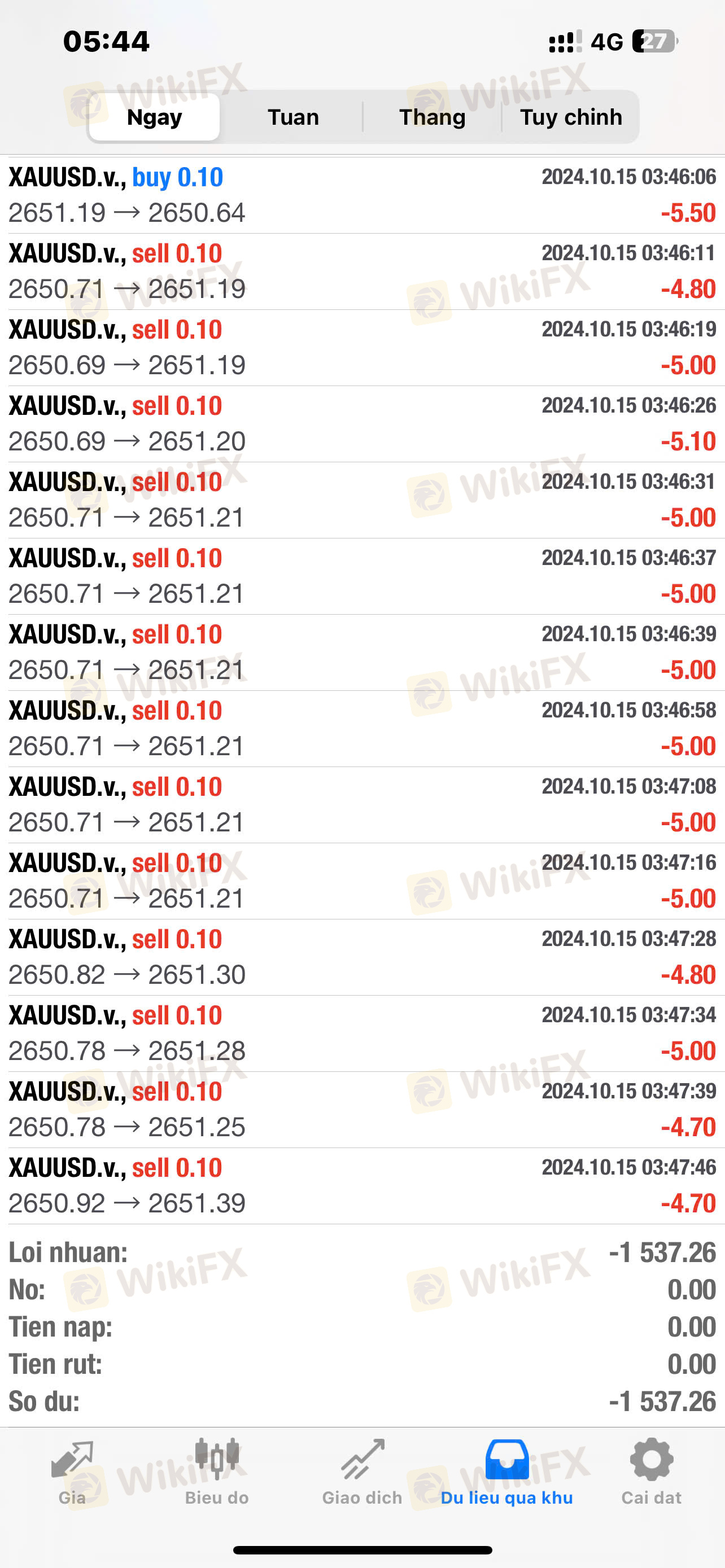 TÔI NGHI NGỜ NGHIỆP VỤ IB SÀN NÀY YẾU KÉM, ĐƯA LỆNH NHẦM MỤC ĐÍCH LÀM ÂM VỐN, 95% LỢI NHUẬN LÀ TỰ TÔI ĐI LỆNH. 3 GIỜ SÁNG HÔM ĐÓ TÔI KHÔNG GIAO DỊCH NHƯNG TÀI KHOẢN CỦA TÔI PHÁT SINH GIAO DỊCH LÀM ÂM VỐN CỦA TÔI. TÔI ĐÃ GỬI 4 MAIL ĐẾN BỘ PHẬN CHĂM SÓC KHÁCH HÀNG NHƯNG ĐẾN HIỆN TẠI HƠN 1 THÁNG QUA VẪN CHƯA NHẬN ĐƯỢC MAIL PHẢN HỒI.