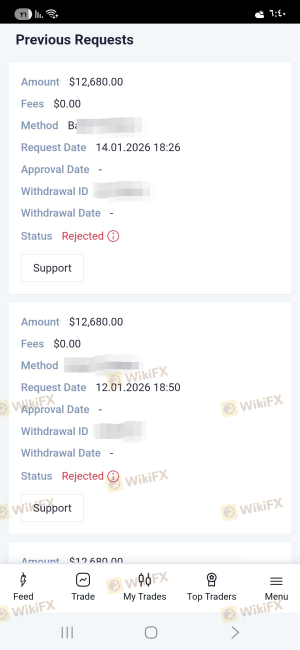 After profits were generated, all withdrawal requests were rejected and funds were returned to the trading account without explanation.
