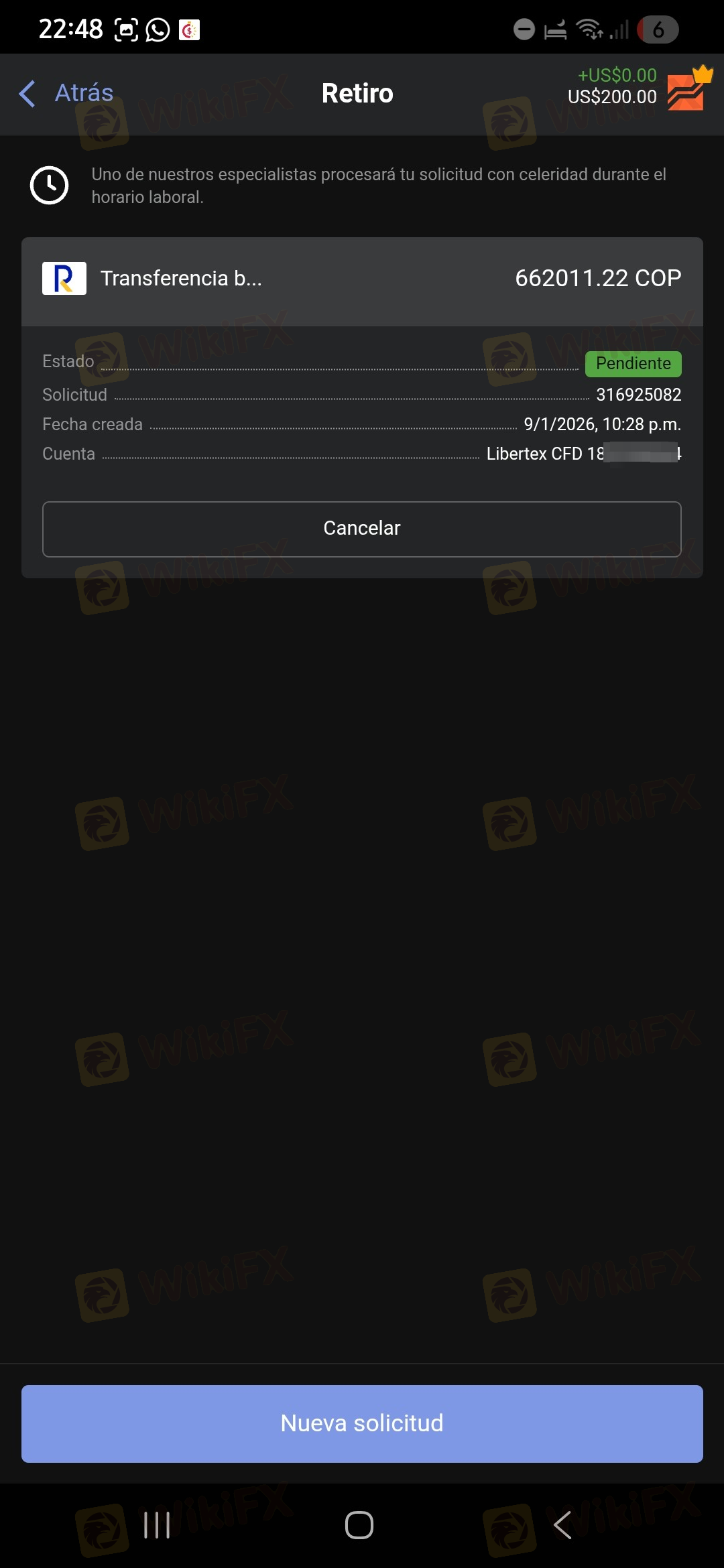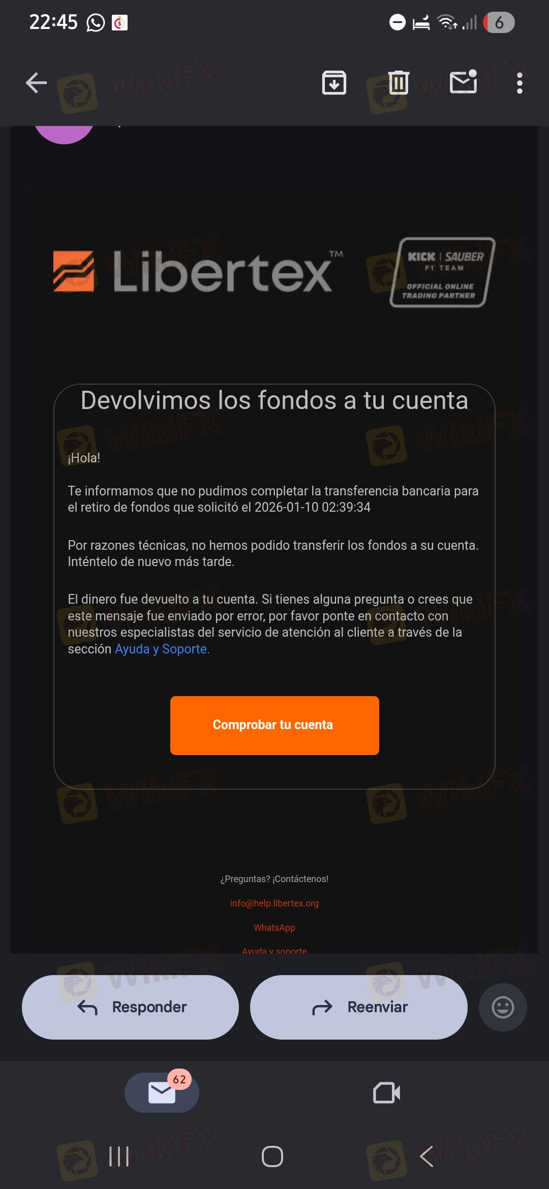 Eu estava trabalhando com o corretor Libertex e não tive nenhum problema, pude depositar e sacar sem nenhum problema. No entanto, meus lucros eram inferiores a $1.000,00 USD. Mas assim que consegui obter lucros, tenho $3.141,52 USD na minha conta e desde sexta-feira, 19 de setembro de 2024, meu saque não foi processado. Na terça-feira, 24 de setembro de 2024, após ligar, recebi uma notificação informando que minha conta não estava verificada. Então eu enviei os dados de verificação. E foi dito que eu receberia uma resposta dentro de 1 a 2 dias úteis. No dia seguinte, quarta-feira, 25 de setembro de 2024, entrei no aplicativo e havia uma notificação informando que se eu não adicionasse uma captura de tela do método de pagamento mostrando o nome da empresa, o valor do dinheiro depositado, data e hora, meu endereço de e-mail, o link da plataforma onde o pagamento foi feito e o logotipo da empresa que usei para fazer o pagamento, minha conta seria suspensa.