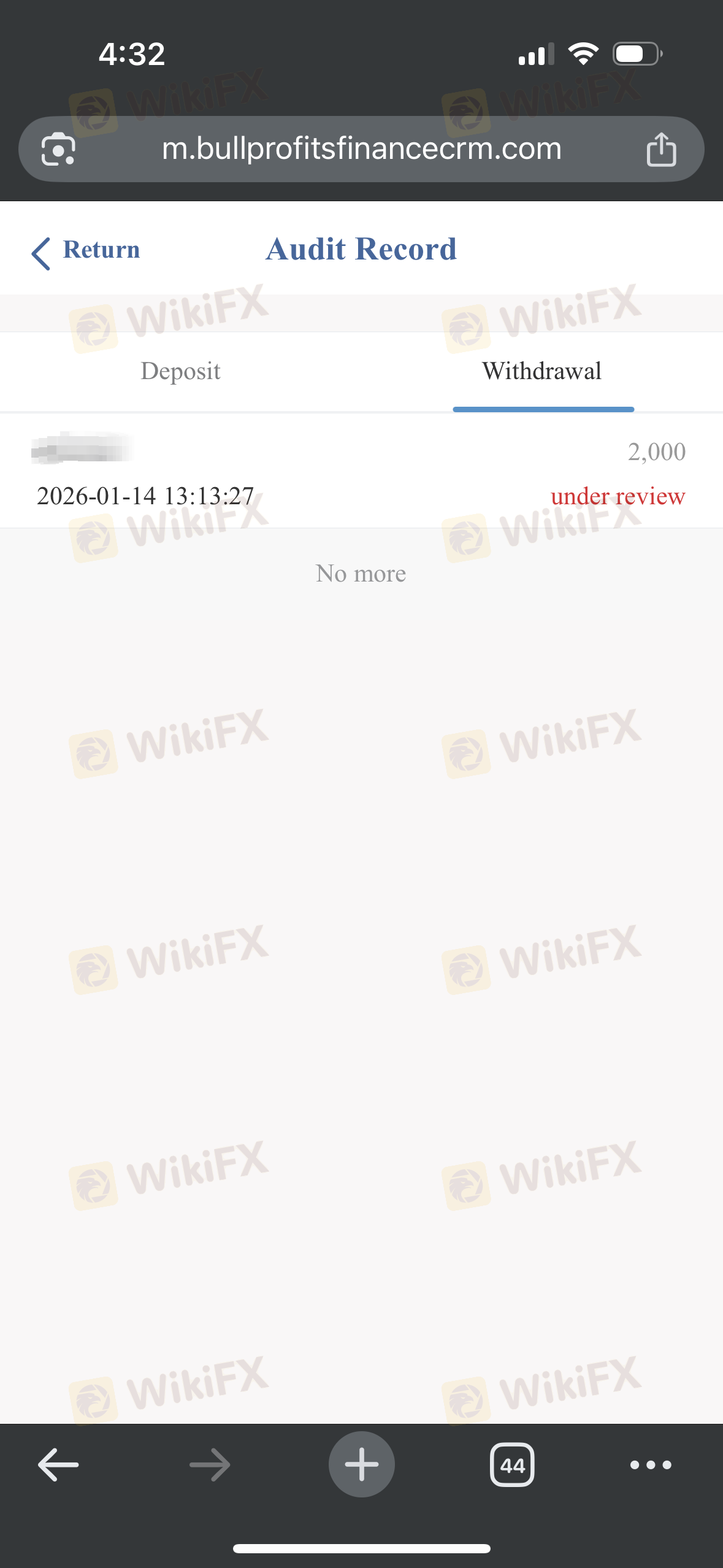 Estou negociando em um site chamado bullprofits, que claramente indica que um trader fraudulento está se passando por uma entidade regulamentada usando nomes e informações de licença semelhantes. Minha experiência: • Depósito de $50 • Negociação manual e geração de um lucro de aproximadamente $2000 • Envio de um pedido de saque • Após enviar o pedido de saque, o trader parou de responder • Saldo da conta e registros de transações estão visíveis, mas os saques estão bloqueados • O atendimento ao cliente está completamente silencioso.