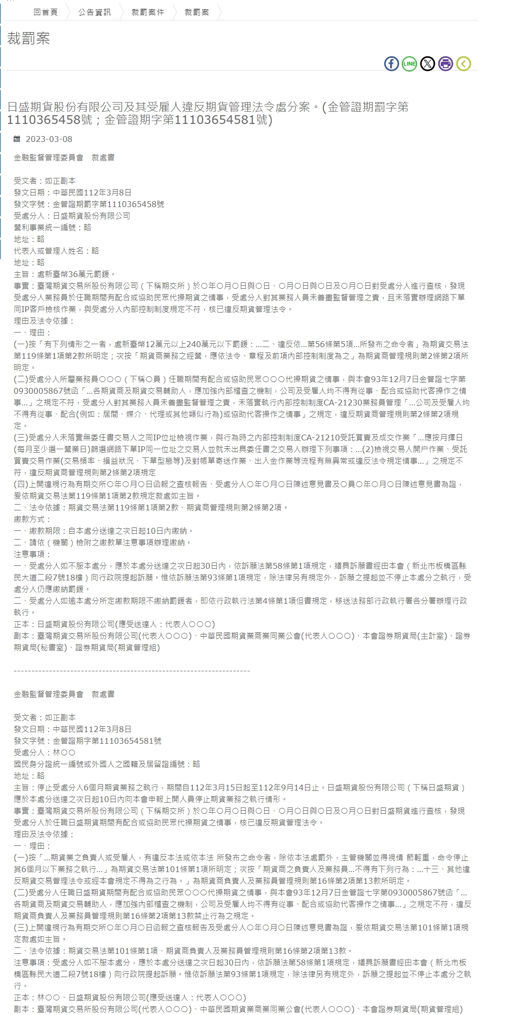 JihSun FuturesUm caso de punição de uma sociedade por ações e seus funcionários por violação da Lei de Gestão de Futuros. (Certificado de Gestão Financeira nº 1110365458; Certificado de Gestão Financeira nº 11103654581)