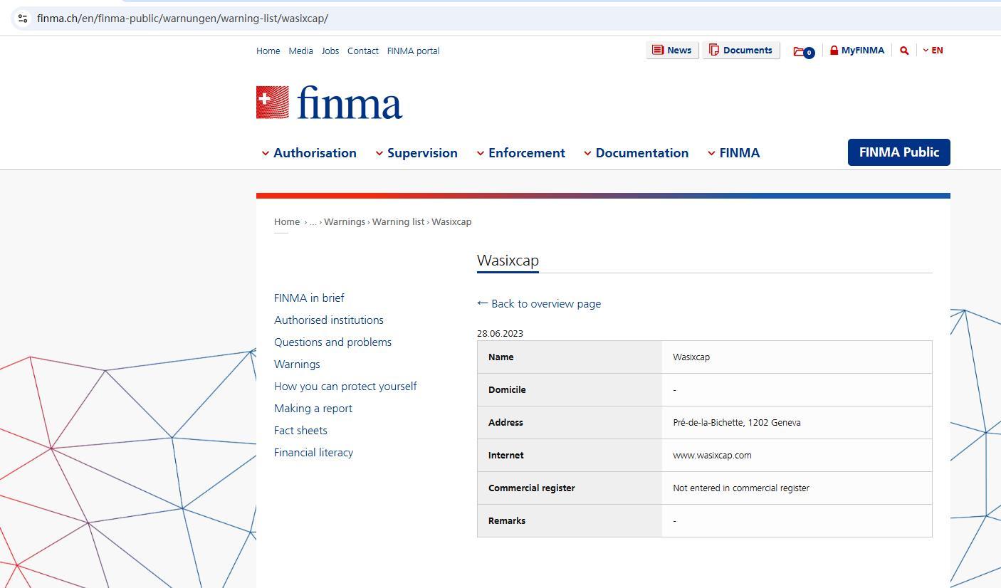 Lista de alerta de empresas e indivíduos não autorizados Wasixcap.