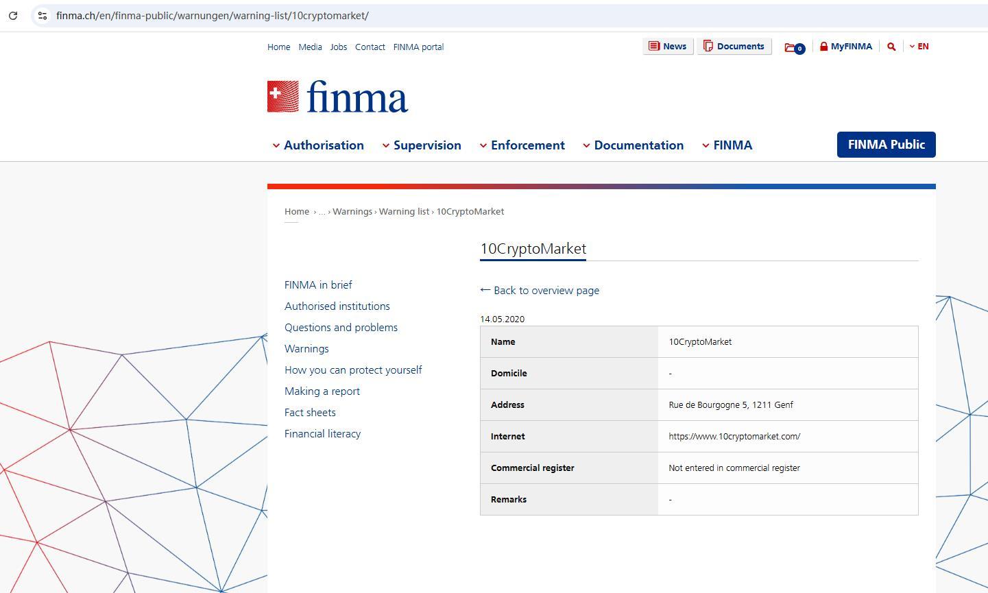 Lista de alerta de empresas e indivíduos não autorizados 10CryptoMarket.