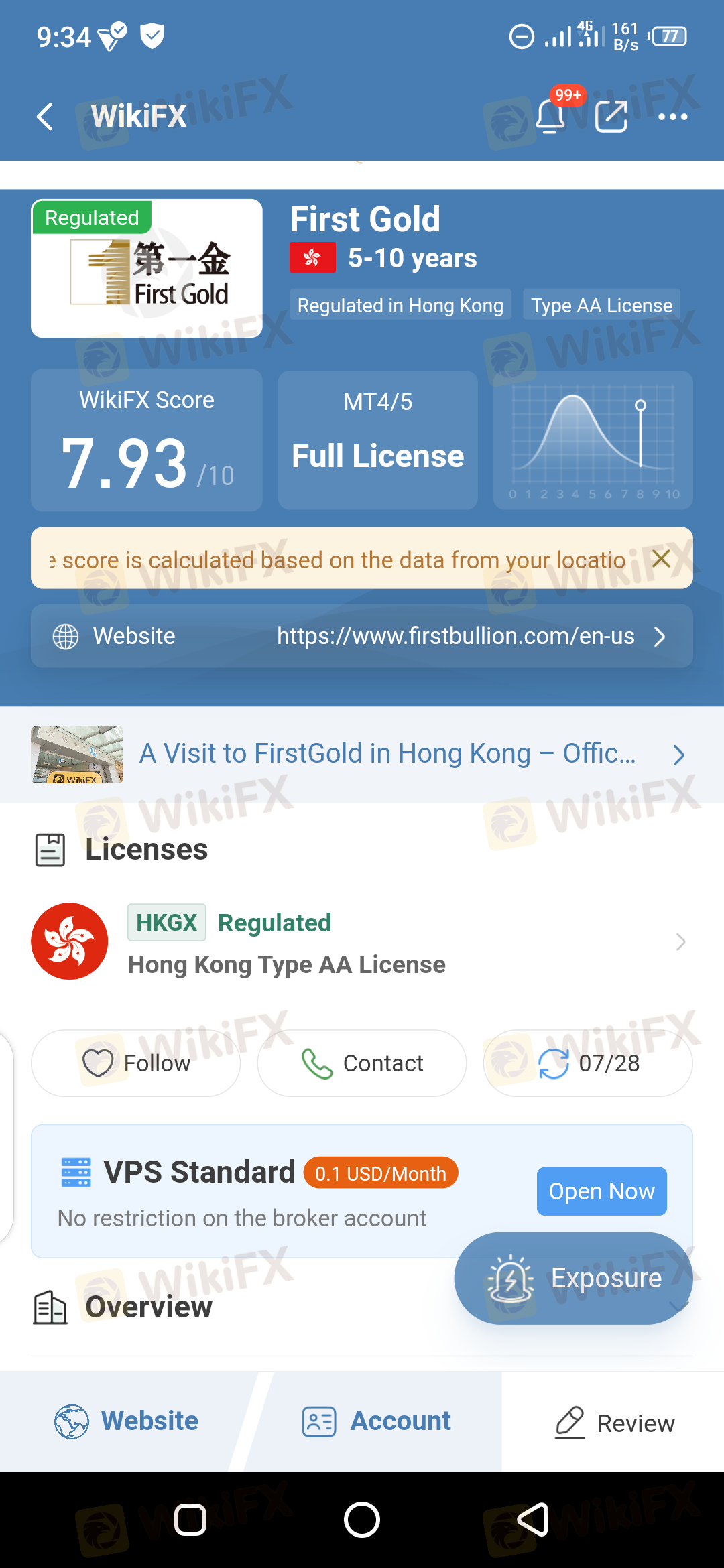 First Gold appears to be a regulated and experienced broker with a decent overall rating, offering popular trading platforms and a low-cost VPS service.