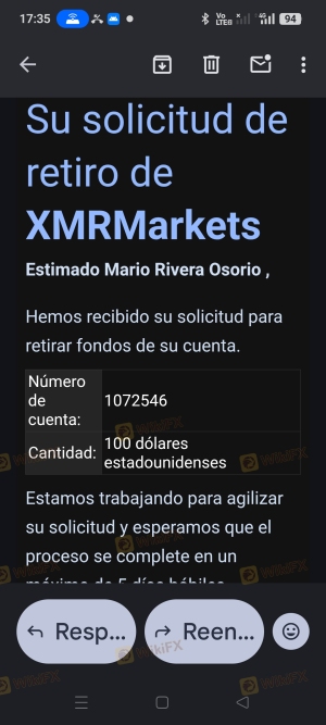 ayer me llamaron solo en la tarde, esperaron 9 seg.pero no hablaron. hoy veo un correo q dice notamos q tienes una solicitud de retiro de 100usd, únicamente permiten eso pero , no se hace efectivo. este es el tercer día de denuncia de la pérdida de 9500usd y un bono de 5000usd por hacer el desembolso. hoy ya no llamaron ni mañana ni tarde.MOBILE.XM RMARKET ES ESTAFA. No inviertan su dinero, yo perdí mis ahorros de años, qdan 3000 de capital pero no permiten retiros.