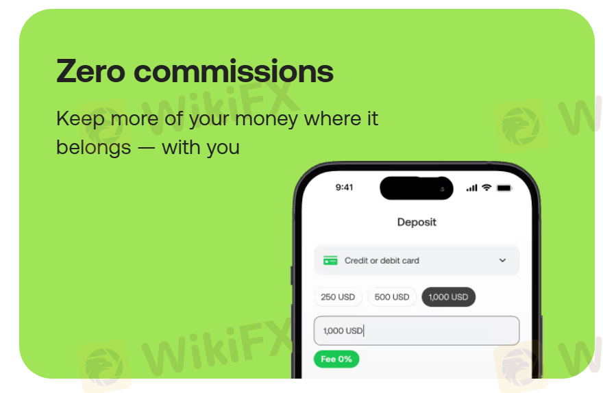doto requer um depósito mínimo de $15 e não cobra taxas.
