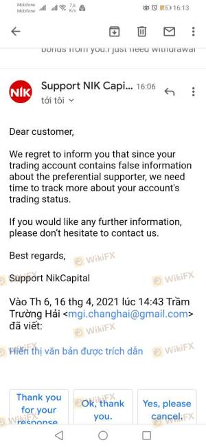 NIK CAPITALfechou o site e a plataforma Meta Trader 5, então não posso sacar fundos