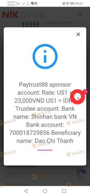 A plataforma de informações é estrangeira, mas na verdade uma conta vietnamita leva o seu nome. Você nunca deve retirar dinheiro de sua conta pessoal. Wikifx por favor intervenha