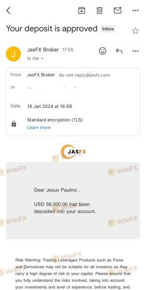 Conheci a plataforma através de um anúncio no Facebook. Parecia interessante e investi algumas economias, seguimos as ordens de compra e venda do consultor do Vietnã. Perdi todo o meu dinheiro em menos de um mês e eles só me pediram para fazer um depósito para recuperar minhas perdas. A equipe de suporte parou de responder e recebi um e-mail do escritório principal da JasFX. Eles ofereceram uma solução através de um seguro e eu não me senti seguro em relação a isso... Depois de ver resultados positivos, peguei dinheiro emprestado para levantar os 18.500 USDT e paguei o seguro. Eles disseram que eu receberia meu dinheiro em menos de 24 horas e já se passaram dois dias e minha retirada ainda não chegou!!! Perguntei ao suporte e eles disseram para esperar cerca de 6 horas. Estou com medo de ter sido enganado novamente, por favor me ajude. Só quero meu dinheiro de volta, são minhas economias de uma vida....