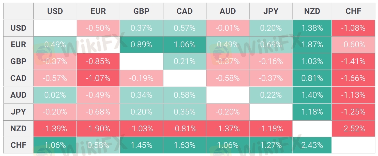 A tabela abaixo mostra a variação percentual do Dólar Americano (USD) em relação às principais moedas listadas nesta semana. O Dólar Americano foi a moeda mais fraca em relação ao Franco Suíço.