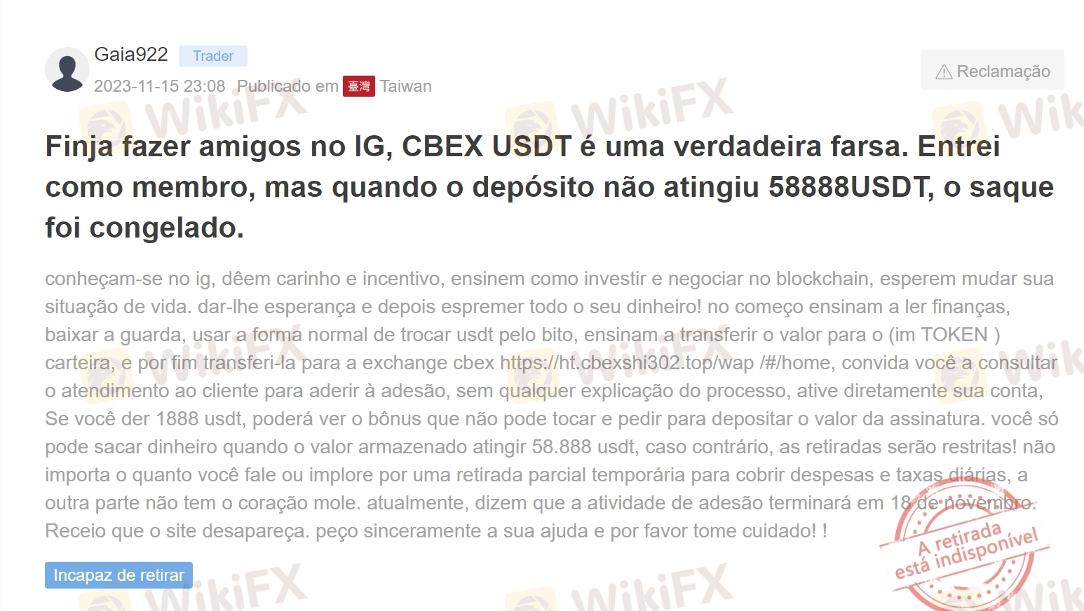 Finja fazer amigos no IG, CBEX USDT é uma verdadeira farsa.