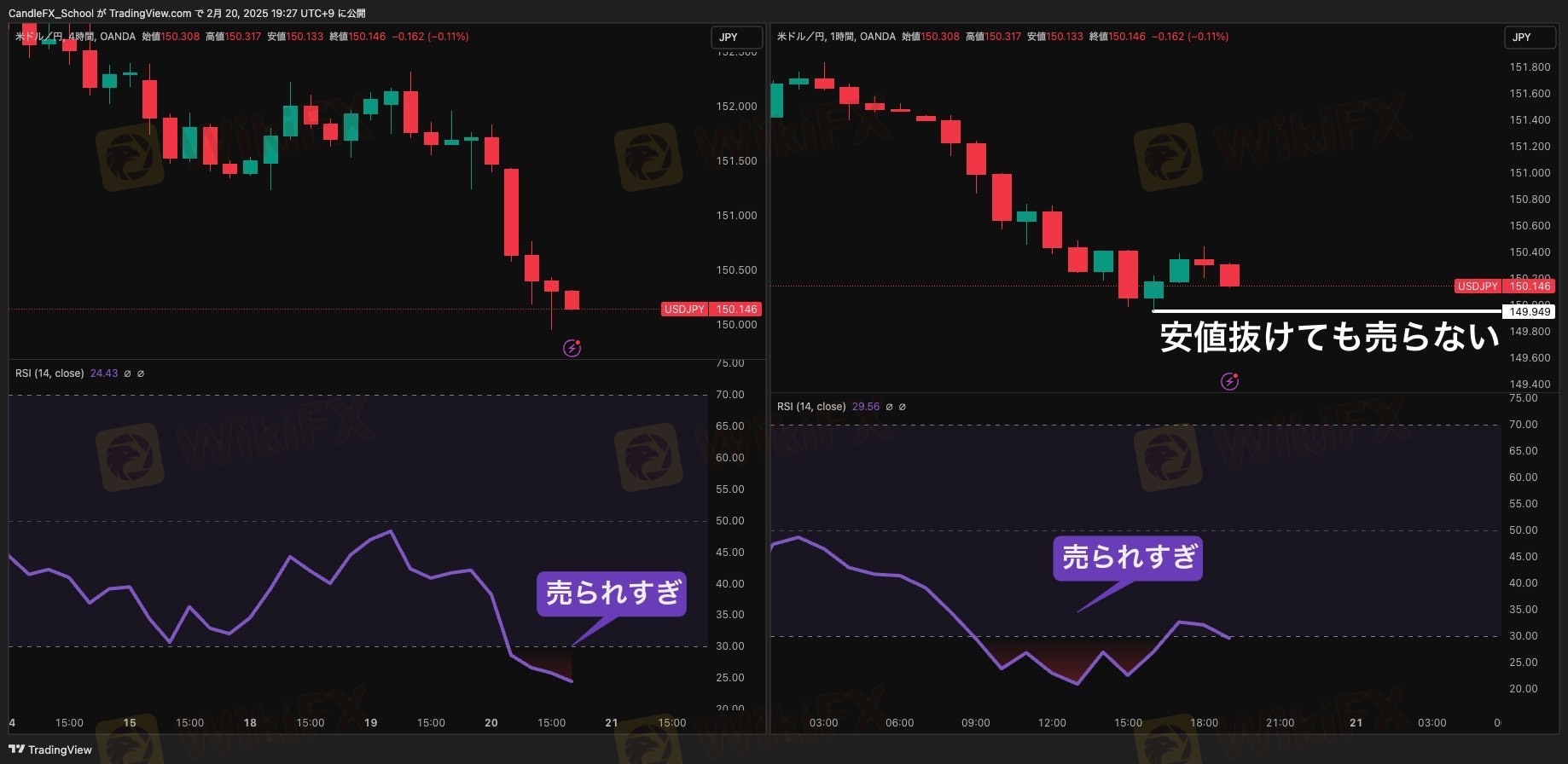 4時間足・1時間足のRSIが売られすぎ領域に突入中!