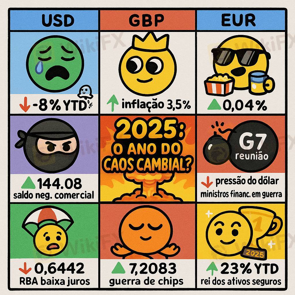 O dólar acumula queda de 8% em 2025 e segue pressionado por incertezas econômicas.