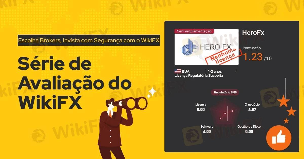 O maior problema identificado é a ausência de regulamentação válida. Segundo a plataforma WikiFX, a HeroFx possui uma nota de apenas 1.23/10 e está marcada com alerta de “licença regulatória suspeita”. A corretora não possui licenças emitidas por entidades confiáveis como FCA, CySEC ou CVM, o que representa risco significativo para os fundos dos clientes.