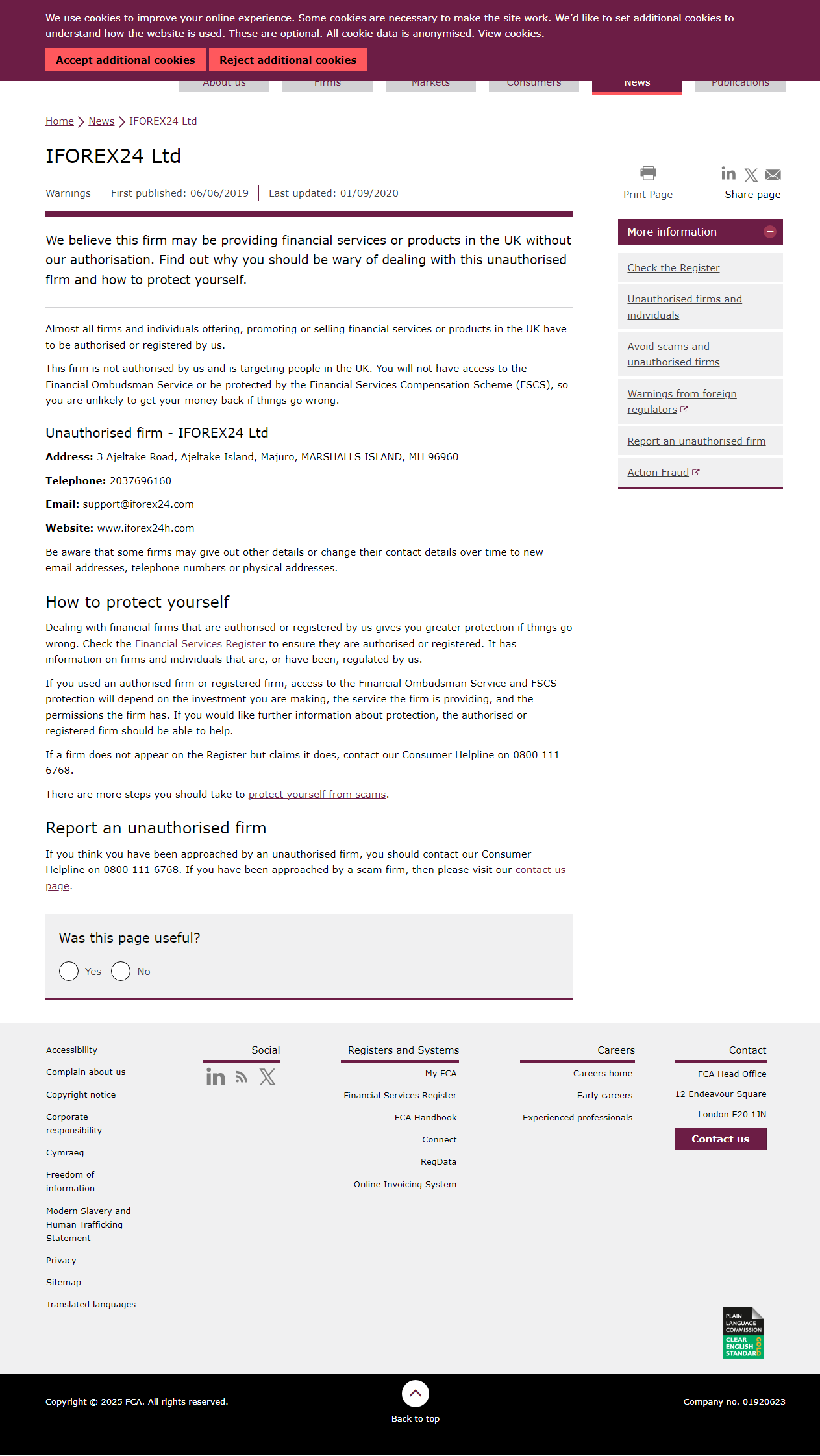 Lista de Aviso da FCA de empresas não autorizadas IFOREX24 Ltd.