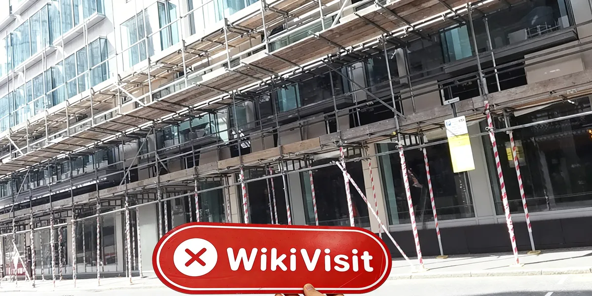 Quando os agrimensores chegaram à frente do prédio, eles puderam ver à distância todo o prédio em reforma, mas não conseguiram ver a situação interna.