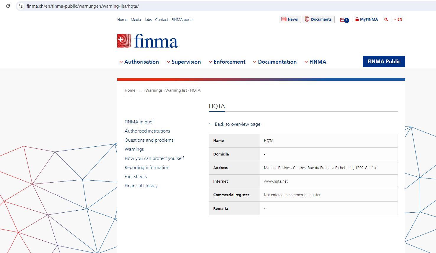 Предупредительный список несанкционированных компаний и частных лиц Предупредительный список - www.hqta.net.