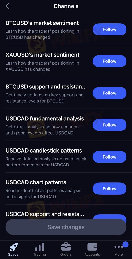 Trading on the octa platform is very easy, most especially because of the spaces... payments too are really easy to complete. There are local payment methods available, so it is even possible to transfer funds with your phone. Using spaces, you can also follow channels that share information about different instruments, just like the image.