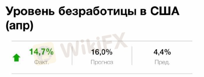 Технический показательВ апреле уровень безработицы в США достиг 14,7%