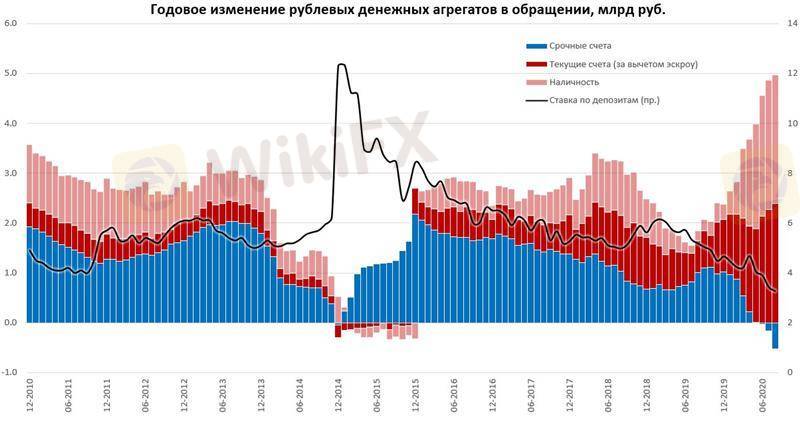 Месяц назад я уже писал о напрягающем росте "кэша" на балансах населения, в августе рост продолжился, наличные выросли на 0.13 трлн руб., текущие счета прибавили 0.26 трлн рублей, а срочные депозиты сократились на 0.23 трлн руб. Даже если откинуть счета эскроу – рост ликвидной рублевой позиции населения усилился. А путь от рублевого "кэша" до спроса на валюту очень короткий!
