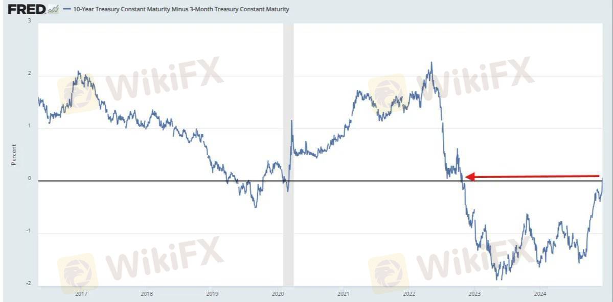 3M/10Y Yield Curve Turns Positive