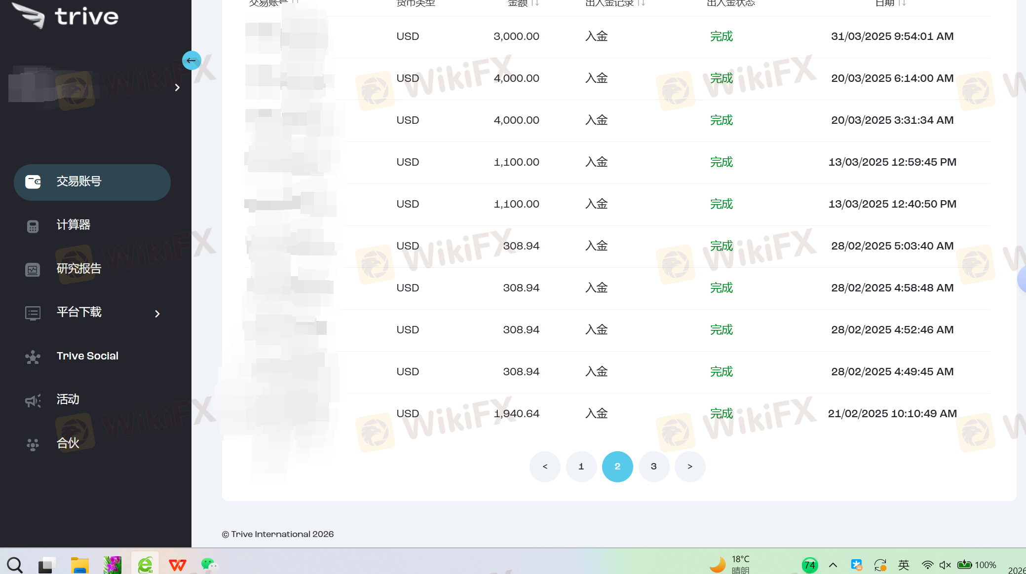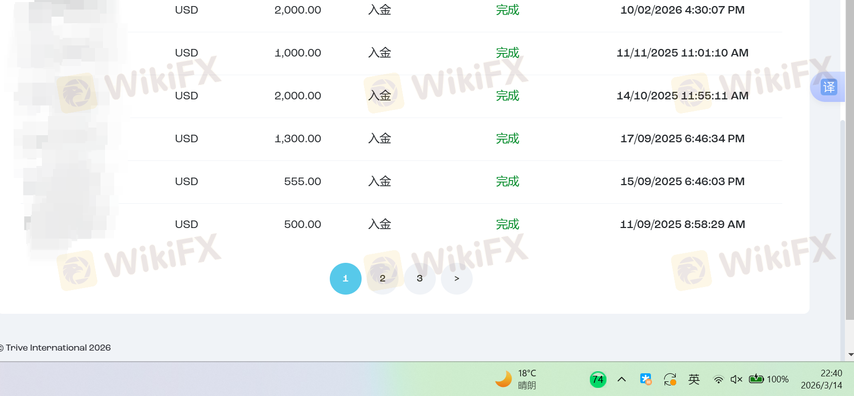 ชื่อของฉันคือ Wu Siyu ในเดือนตุลาคม พ.ศ. 2024 ฉันเปิดบัญชีและเริ่มซื้อขายบนแพลตฟอร์ม TRIVE ที่ถูกแนะนำโดยพนักงานขาย ด้วยหมายเลขบัญชี: 12042547 ในต้นแรกเนื่องจากการทำนายตลาดไม่ถูกต้องบัญชีของฉันเสียเงิน และฉันก็ยังฝากเงินเพื่อป้องกันบัญชีไม่ถูกล้าง ระหว่างการซื้อขายมีการขาดทุนและกำไร และทุกธุรกรรมรวมถึงการฝากเงินและถอนเงินก็ปกติ (ในเวลานี้บัญชีอยู่ในสภาพขาดทุนโดยรวม ฝากเงินเกินถอน) ภายหลังเมื่อเงื่อนไขตลาดเปลี่ยนเป็นที่ดีบัญชีของฉันเปลี่ยนจากขาดทุนเป็นกำไร ในจุดนี้เมื่อฉันยื่นขอถอนกำไรแพลตฟอร์มจำกัดบัญชีของฉันอย่างไม่เหมาะสมและไม่ดำเนินการถอนเงิน การเจรจาต่อมาไม่สำเร็จและแพลตฟอร์มหักเงิน $18,698.72 จากบัญชีของฉัน ฉันมีความตั้งใจที่จะเปิดเผยการกระทำที่ไม่เหมาะสมของ TRIVE และเตือนผู้ใช้ทุกคนให้หลีกเลี่ยงแพลตฟอร์มที่หลอกลวงนี้ซึ่งเพียงอนุญาตให้เสียเงินแต่ไม่อนุญาตให้ได้กำไร มาเริ่มกันเถอะเราจะขับไล่แพลตฟอร์มประเภทนี้ออกจากตลาด ฉันหวังว่าหน่วยงานกำกับดูแลและสื่อจะเรียกร้องให้แพลตฟอร์มนี้คืนเงิน $18,698.72 ของฉัน ขอบคุณ! เราจะต่อต้านแพลตฟอร์มหลอกลวงอย่างเด็ดขาดและเริ่มต้นด้วยการแจ้งเพื่อนของเรา