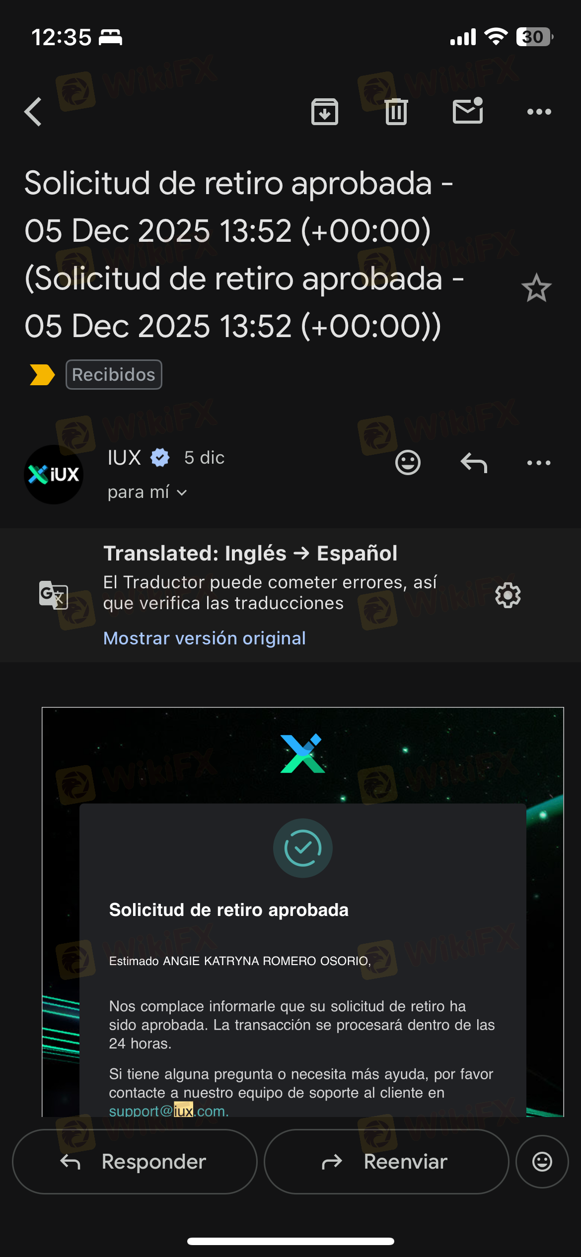 ผมถอนเงิน IUX แล้วยังไม่ได้เงิน ระบบบอกถอนเงินสำเร็จ แต่เงินไม่เข้าบัญชีแจ้งไป เค้าบอกให้รอ 24 ชั่วโมง ค่อยแจ้งใหม่ พอ 24 ชั่วโมงแจ้งไป บอกว่าส่งเรื่องไปสำนักงานใหญ่ให้ในรอตอบกลับ🌀