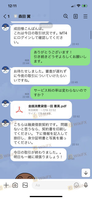 ฉันบินจาก FB ไปที่กลุ่ม LINE ดาวน์โหลด MT4 ตั้งค่าบัญชี และเริ่มซื้อขาย คุณโมริตะรับผิดชอบและเริ่มจัดการประมาณ 100,000 ถึง 200,000 เยน เขาบอกว่ามีสินค้าลดราคาสำหรับน้ำมันดิบและเขาจะทำกำไรได้แน่นอน แต่เมื่อเขาซื้อ 5 หน่วย เขาได้รับแจ้งว่าการทำธุรกรรมต้องวางเงินมัดจำ ดังนั้นโปรดทำการฝากเงินในอีกสักครู่ ตารางแสดงให้เห็นว่า 300% สำหรับน้อยกว่า 10 ล้าน 400% สำหรับมากกว่า 10 ล้าน 800% สำหรับ 50 ล้าน 1000% สำหรับ 80 ล้าน และ 1200% สำหรับ 100 ล้าน เมื่อวันที่ 12 กรกฎาคม ฉันได้รับแจ้งว่าฉันสามารถยืมเงินได้ 50 ล้านเยน และไม่มีคำอธิบายว่าจะชำระคืนอย่างไร ฉันจ่ายก่อนที่จะมีการแลกเปลี่ยนสัญญา มันบอกว่ากองทุนดำเนินการไม่สามารถชำระหนี้ได้ ดังนั้นฉันจึงติดต่อผู้รับผิดชอบทันทีและขอเปลี่ยนสัญญาหรือยกหนี้ แต่ก็ไม่เสร็จและไม่ได้ส่งสัญญา ตามบันทึกกลายเป็น 378 ล้านคนในเวลาเพียงสัปดาห์เดียว เมื่อฉันถามคนที่มีประสบการณ์ด้านการลงทุนรอบตัวฉัน ฉันรู้ว่า MT4 นั้นเต็มไปด้วยนักต้มตุ๋น เป็นเรื่องยากที่เงินต้นจะเพิ่มขึ้นหกครั้งในหนึ่งสัปดาห์ แม้แต่ในตลาดสหรัฐฯ คุณโมริตะผู้รับผิดชอบกล่าวว่าเขาจะหารือกับประธานคุณทานากะเกี่ยวกับวิธีการชำระเงินจากกองทุนดำเนินงาน แต่เมื่อวันที่ 18 กรกฎาคม เขาบอกว่ามันเป็นไปไม่ได้ แม้ว่าฉันจะบอกว่าไม่มีสัญญา ประธานทานากะและคุณโมริตะก็ไม่ฟัง คุณช่วยอนุญาโตตุลาการและปรับเปลี่ยนและคืนเงิน 10 ล้านเยนเดิมให้ฉันได้ไหม ไม่ต้องการเงินที่เหลือ ขอบคุณ