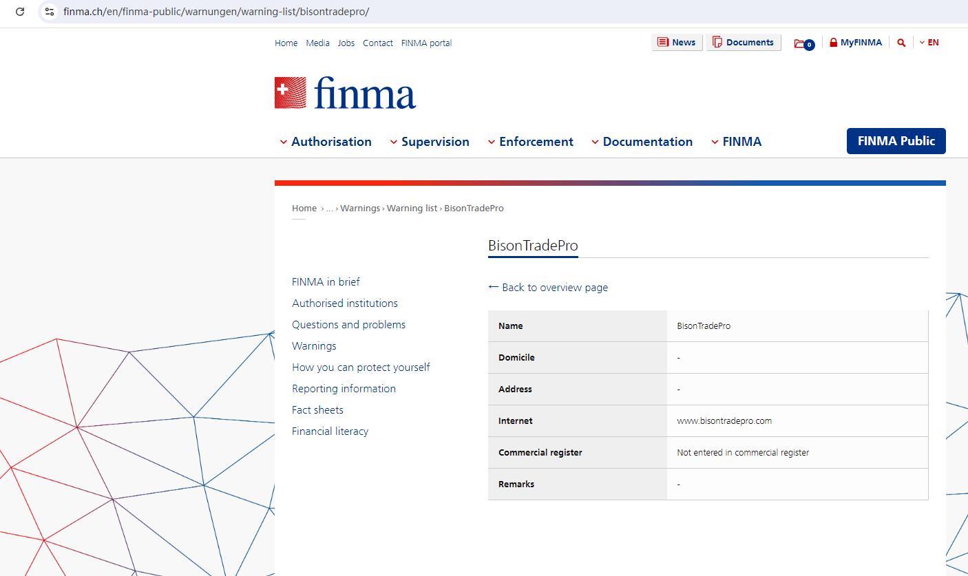 รายชื่อเตือนเกี่ยวกับบริษัทและบุคคลที่ไม่มีสิทธิ์ รายชื่อเตือน -www.bisontradepro.com.