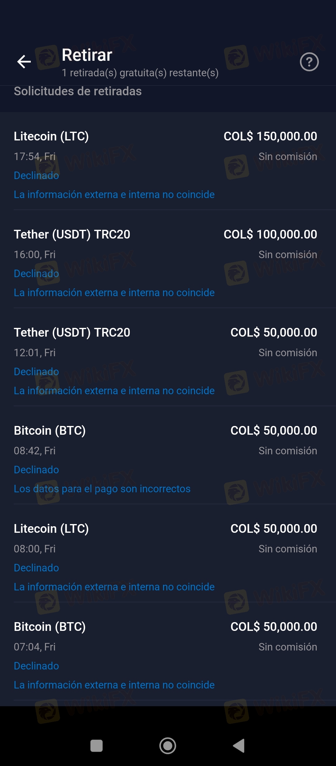 no me deja retirar a otra plataforma y eso q es de crito a critomoneda