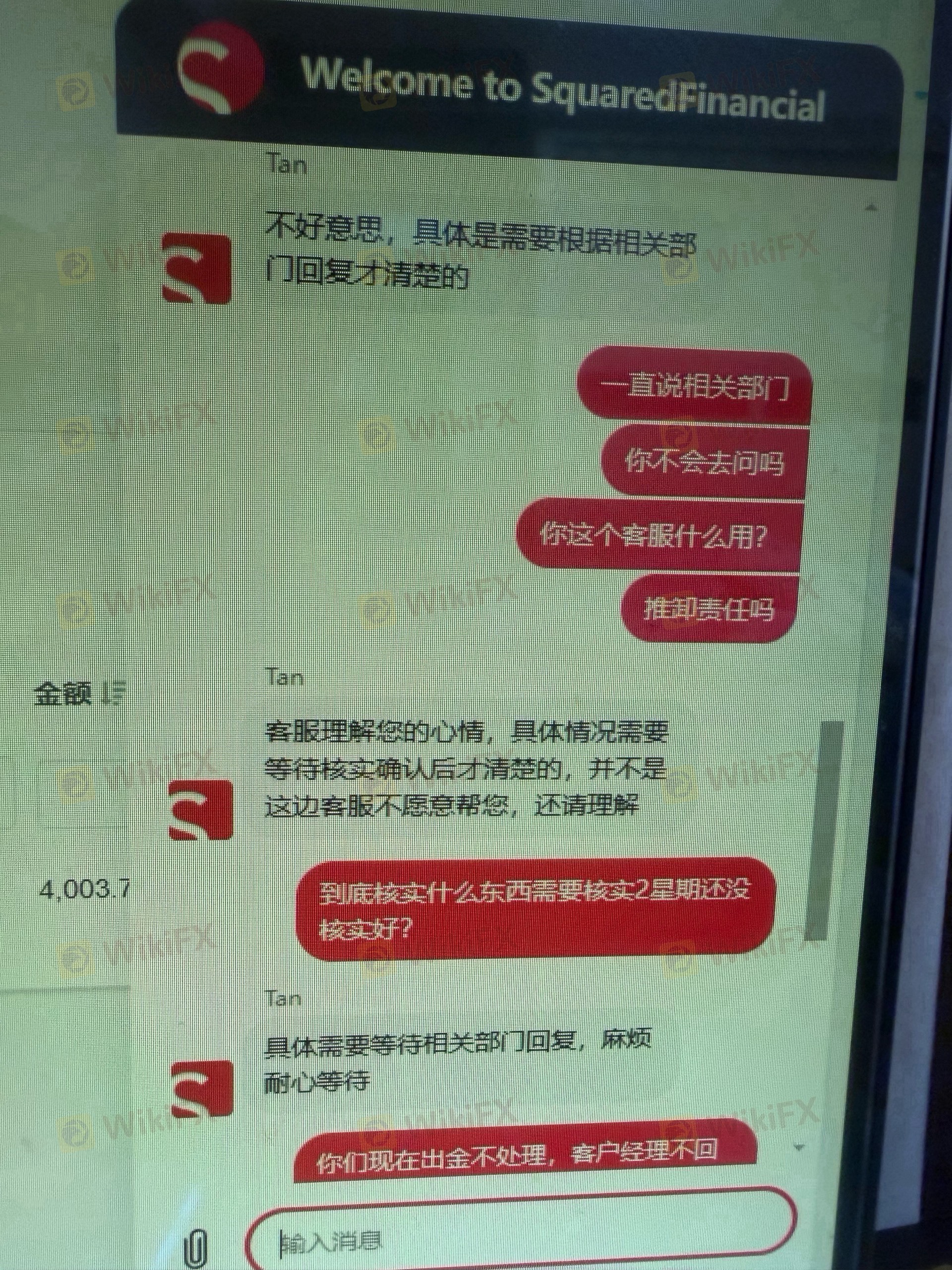 สวัสดีทุกคน Scam Alert Squared Financial เป็นโบรกเกอร์ Scammer รายใหม่ในตลาดที่พวกเขาระงับการถอนเงินจากเทรดเดอร์จำนวนมาก ดังที่คุณเห็นในภาพหน้าจอด้านล่าง ดังนั้นโปรดระวังทุกคนอย่าฝากเงินกับโบรกเกอร์ Scammer รายนี้