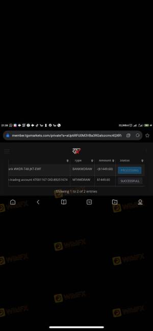 แม้ว่าฉันจะทำธุรกรรมเพียงหนึ่งครั้งเท่านั้น ด้วยเงินทุน 500 ดอลลาร์ แต่ฉันได้กำไร 1,449 ดอลลาร์ ฉันอยากจะถอนเงิน แต่ถูกกักขังและไม่ได้รับการชำระเงินจนถึงตอนนี้ แม้ว่าผู้ที่ขอถอนเงินในกลุ่มจะถูกเตะออกทันที
