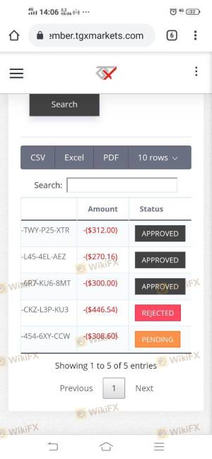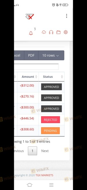 ไม่สามารถถอนออกจากTGX MARKETS LCC