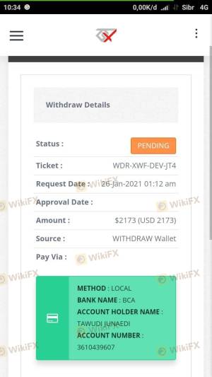 ก่อนอื่นฉันต้องการจ่าย $2,173 ก่อน ก่อนอื่นมันอยู่ในสถานะรอดำเนินการ แล้วมันก็ดำเนินการแล้ว มันบอกว่าได้ส่งไปที่ LD แต่มันไม่อยู่ใน TF...มันบอกว่ายังไม่มี IDR แต่โอเค รอสักครู่ ดีแล้ว แล้วเพราะถอนเงินใช้เวลานาน ฉันโง่ๆ ก็ฝากเงินเพิ่มอีก $1,000 และในที่สุดบัญชีก็ถูกแบน