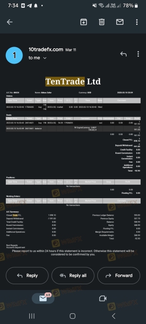 ฉันหวังว่าฉันจะไม่เคยพบกับ TenTrade อีกต่อไป นี่เป็นประสบการณ์การซื้อขายที่แย่ที่สุดในชีวิตของฉัน ฉันเริ่มฝากเงินกับพวกเขาเพื่อหวังว่าจะซื้อขายและถอนกำไรของฉันเหมือนโบรกเกอร์ปกติที่อนุญาต แต่นั่นเป็นความผิดพลาดที่ใหญ่มาก ทุกอย่างดูเหมาะสมในเริ่มต้น การซื้อขายเรียบร้อยและฉันได้กำไรที่ดีบ้าง แต่เมื่อถึงเวลาถอนเงิน นั่นเป็นเวลาที่นิ้วมือเริ่มเคลื่อนไหว คำขอถอนของฉันถูกละเว้น ล่าช้าไม่มีกำหนด หรือถูกปฏิเสธโดยอ้างข้อกล่าวหาไร้สาระ พวกเขายังมีกล้าหาญที่จะกล่าวหาฉันว่าฉันละเมิดข้อกำหนดโดยไม่ให้หลักฐานใด ๆ หลังจากสัปดาห์ของอีเมลและการสนทนาสดที่ไม่ได้เกิดอะไรขึ้น ฉันรู้สึกว่า TenTrade ไม่เคยปล่อยให้ฉันถอนเงินที่ได้รับด้วยความยากลำบาก มันชัดเจนว่าพวกเขากำลังดำเนินการหลอกลวง กับการสร้างความสัญญาณเทียมแล้วปฏิเสธการปล่อยเงินของพวกเขา ฉันขอแนะนำให้ผู้ที่คิดที่จะใช้ TenTrade ให้หลีกเลี่ยง