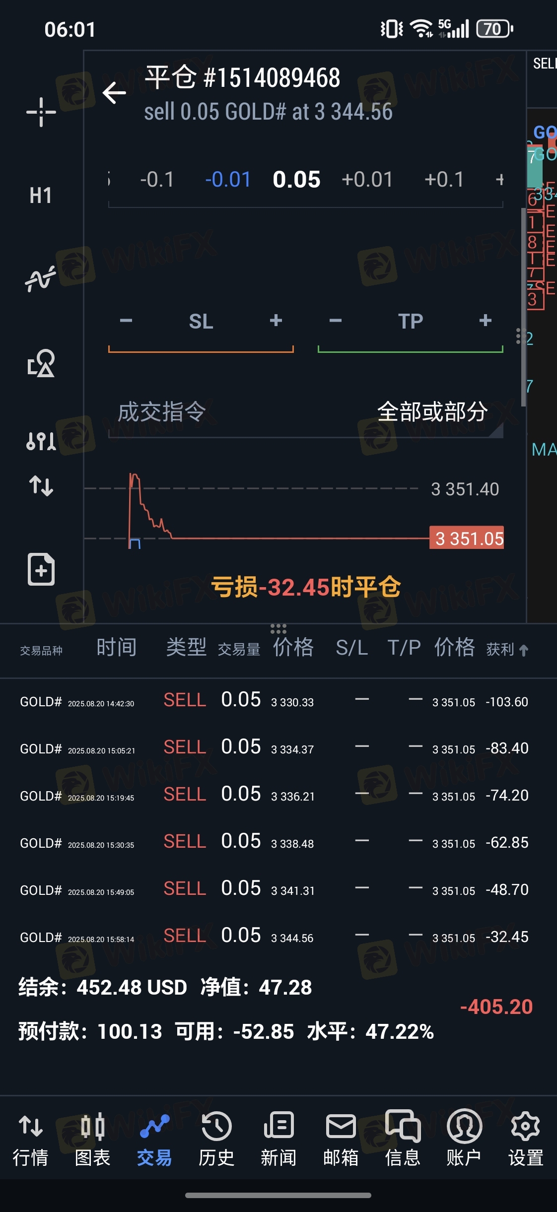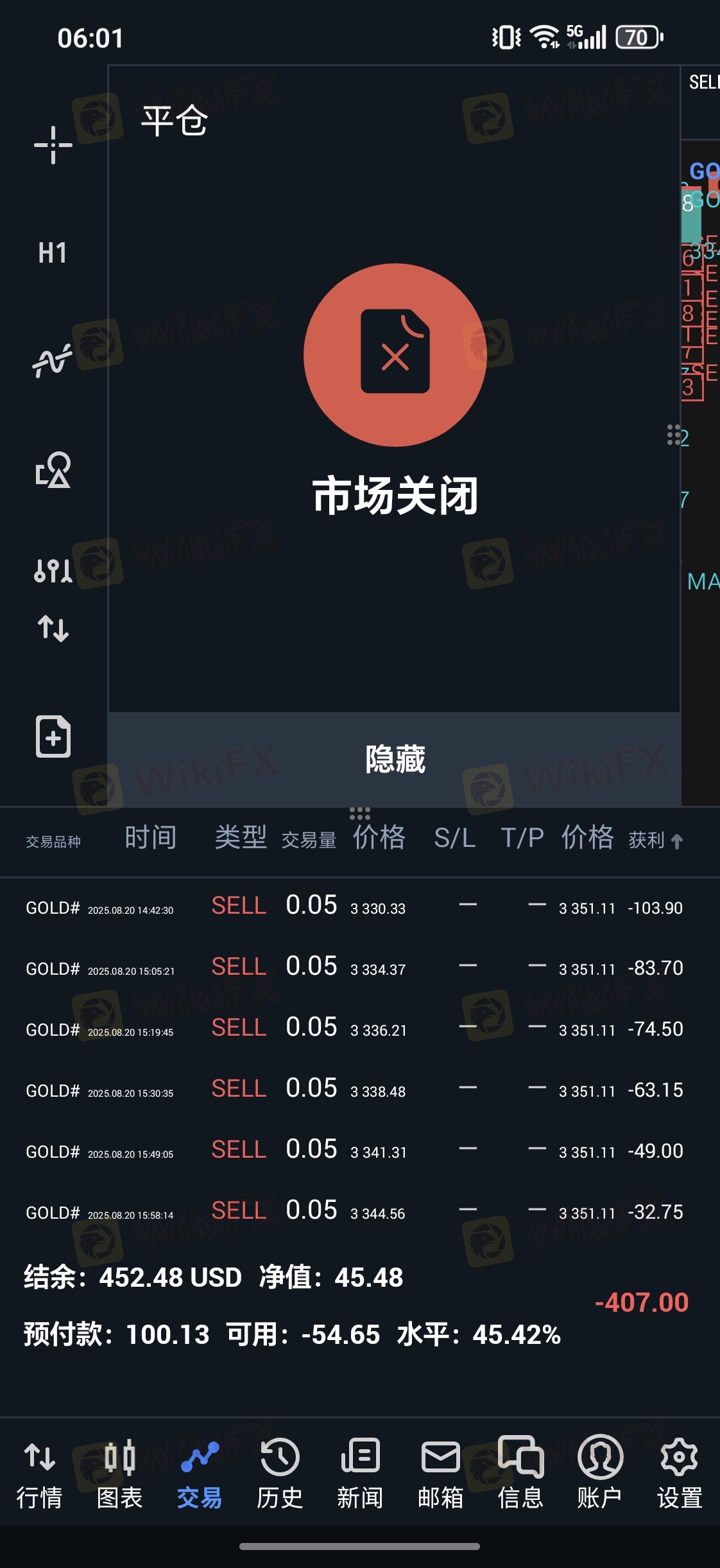 尊敬的客户, 您好,首先感谢您选择XM和对我们的支持! 关于您账户 68207995 投诉的事宜,我们第一时间进行深入调查,经调查核实,目前给予您如下回复: 关于您投诉的单号#1520903523 ,查看您的单子于平台时间2025-08-21 01:05 手动平仓, 平仓价格为 3352.04。具体黄金交易时间是平台时间01:05(目前是夏令时,即北京时间06:05)开始的。由于刚开市的时候报价波动比较大,为了规避风险我们平台交易前都有5分钟的报价时间,报价时间是无法交易的,因此您也无法在该时间段手动平仓的,望您谅解。 XM 温馨提醒: 黄金交易时间为:周一至周四 平台时间 01:05 - 23: 55 ,周五 平台时间 01:05 - 23: 50 。目前夏令时,加上5小时就是北京时间 周一至周四 06:05 - 次日的04:55,周五 06:05 - 次日的04:50 最后再次感谢您对XM的理解和支持!如果您有任何疑问烦请您随时联系进入XM官方网站 https://www.xmmarketcn.tech/cn ,点击右下角的问号标志联系客服,XM提供周一至周五24小时在线客户支持 ,我们非常乐意为您服务。 致谢