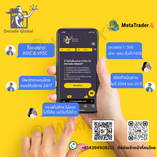 Decode Global เปิดดำเนินงานในปี 2004 ภายใต้การกับกับดูแลของหน่วยงาน ASIC รวมเวลากว่า 20 ปี เป็นผู้ให้บริการในสัญญาซื้อขายส่วนต่าง เพื่อรองรับการเติบโตที่เพิ่มขึ้นอย่างรวดเร็ว เราจึงมองหาพันธมิตรหรือ IB เพื่อร่วมงานพร้อมให้การสนับสนุนและดูแลอย่างดีเยี่ยม มาร่วมเป็นครอบครัว Decode Global เพื่อการเติบโตที่ยั่งยื่น ติดต่อเจ้าหน้าที่คนไทยได้ที่ไลน์ แอด:jumiewei หรือไลน์ OA: @553ufcat