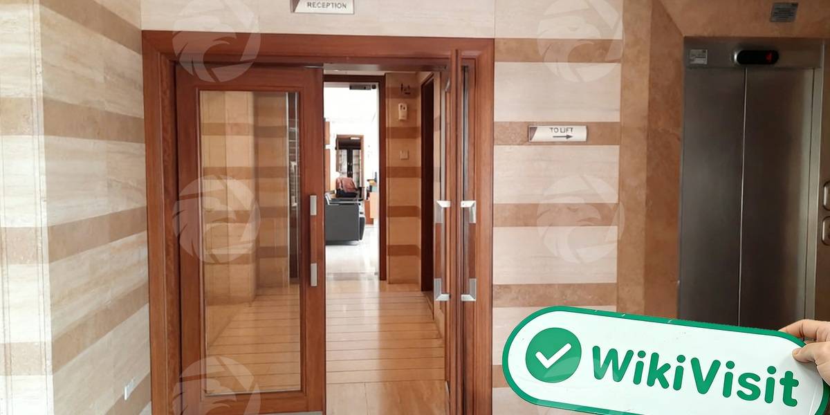 จากนั้นทีมตรวจสอบสามารถขึ้นลิฟต์ไปยังชั้น 5 และเห็นสำนักงานของ SQUAREDFINANCIAL อย่างง่ายดาย โดยมีชื่อและโลโก้ของบริษัทแสดงบนประตูสำนักงานขนาดใหญ่