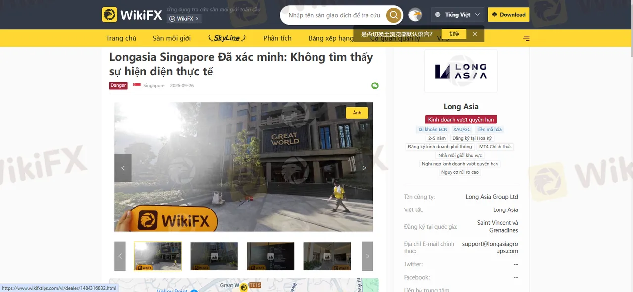 WikiFX đã xác minh rằng địa chỉ trụ sở tại Singapore mà Long Asia tuyên bố là giả mạo, không tìm thấy sự hiện diện thực tế. Việc sử dụng địa chỉ “ma” là chiến thuật kinh điển của các sàn forex lừa đảo, nhằm trốn tránh trách nhiệm pháp lý khi có tranh chấp.