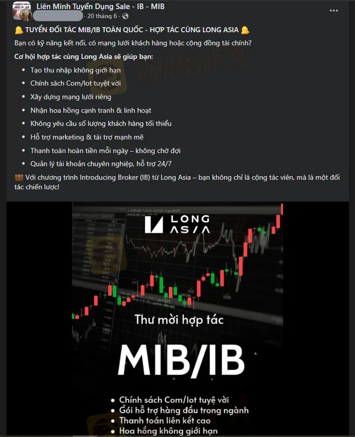 Sau một thời gian dài “im hơi lặng tiếng” từ khoảng năm 2020 để mọi chuyện lắng xuống, Long Asia đã bất ngờ tái xuất rầm rộ vào năm 2025 với các bài đăng tuyển dụng IB/MIB với cơ chế “khủng”: