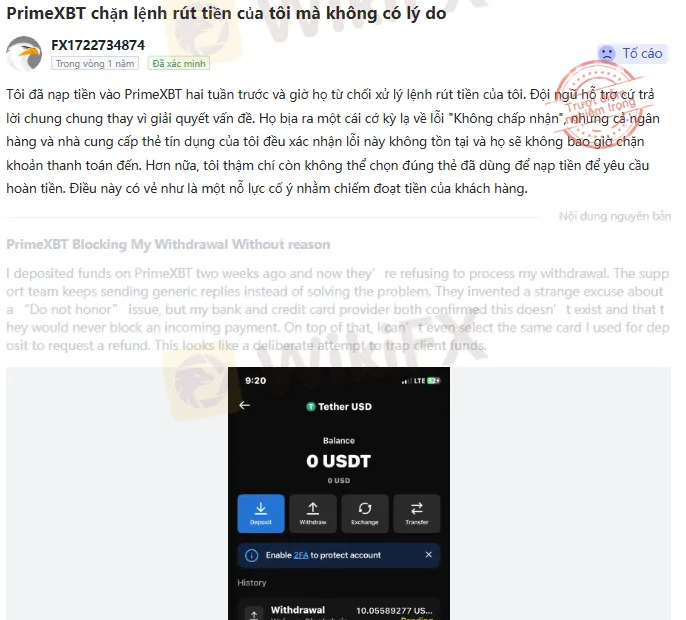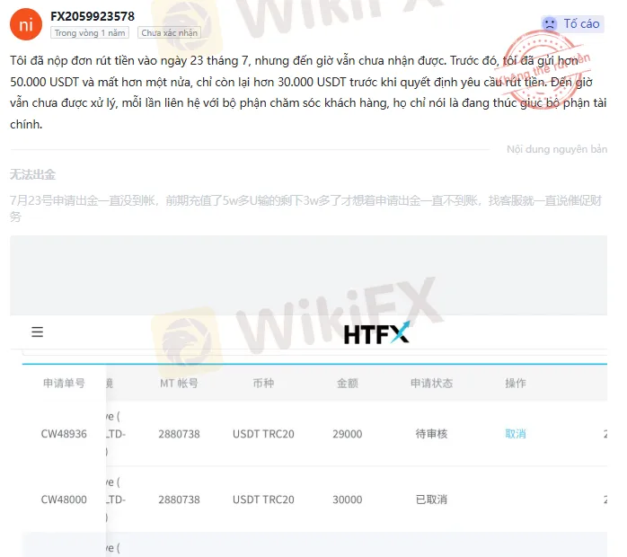 Ví dụ, một nhà đầu tư Hong Kong nộp đơn từ tháng 8 nhưng đến tháng 9 vẫn “treo” với lý do “vấn đề tài chính”, trong khi dịch vụ khách hàng chỉ gửi tin nhắn tự động. Một trường hợp khác từ Ghana mất hơn 30.000 USDT sau khi nạp 50.000 USDT, với yêu cầu rút từ tháng 7 bị trì hoãn vô hạn.