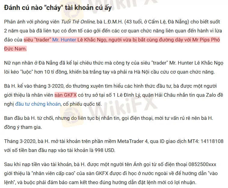 Cái tên GKFX đã in hằn trong ký ức cộng đồng đầu tư Việt Nam như một minh chứng cho sự dối trá. Sàn này từng bị báo chí trong nước như Báo Tuổi Trẻ cảnh báo là sàn lừa đảo. Đặc biệt khi sự liên đới của GKFX cho thấy chính Mr. Pips Phó Đức Nam – người đã bị bắt vì chiếm đoạt hàng nghìn tỷ đồng của nhà đầu tư Việt Nam – đứng sau sàn forex lừa đảo này. Các nạn nhân đã kể lại câu chuyện bị dụ dỗ nạp tiền và thao túng giao dịch trên chính nền tảng GKFX.