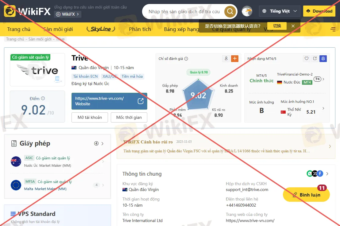 Lời nói đầu:Sàn Forex Trive lừa đảo? Bằng chứng nợ lương nhân viên, cảnh báo FCA, phạt Malta & sự thật Trive là GKFX đổi tên. Đánh giá chi tiết sàn Trive 2025, rủi ro chặn rút tiền. WikiFX khuyến cáo nhà đầu tư Việt kiểm tra kỹ trước khi giao dịch.