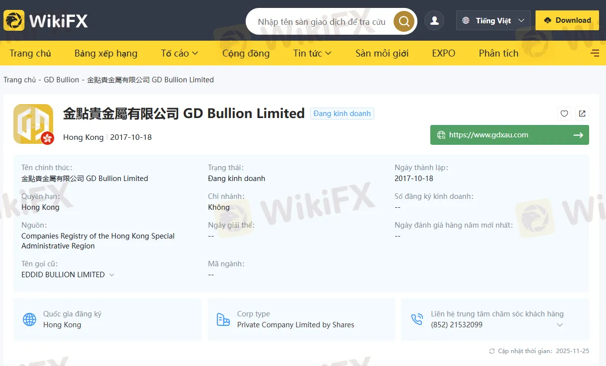 Theo tài liệu WikiFX thu thập được, GD Bullion Limited là thành viên số 156 của Sở Giao dịch Vàng Bạc Hong Kong (CGSE) với loại giấy phép AA. Tuy nhiên, giấy phép này chỉ cho phép công ty giao dịch kim loại quý giao ngay (spot bullion), không bao gồm các sản phẩm phái sinh phức tạp như CFD hay Forex - những sản phẩm cốt lõi mà GDFSTRADE đang cung cấp.