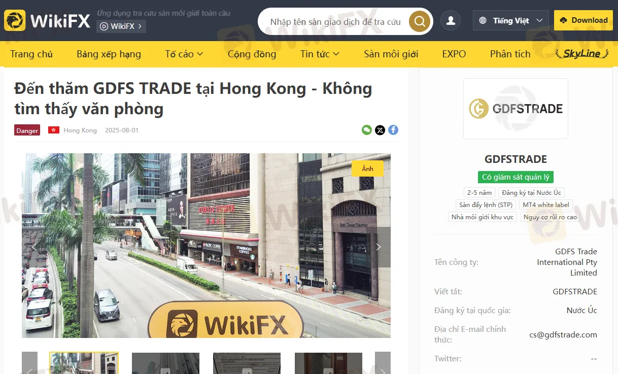 Theo kết quả thẩm định thực địa của WikiFX, địa chỉ GDFSTRADE công bố tại Level 28, 1 Market Street Sydney NSW 2000 không khớp với địa chỉ đăng ký chính thức trong hồ sơ ASIC. Thậm chí, một địa chỉ khác mà họ cung cấp tại Hong Kong (14/F Fortis Building, 77-79 Gloucester Rd) cũng không có bất kỳ dấu hiệu hoạt động thực tế nào của công ty.
